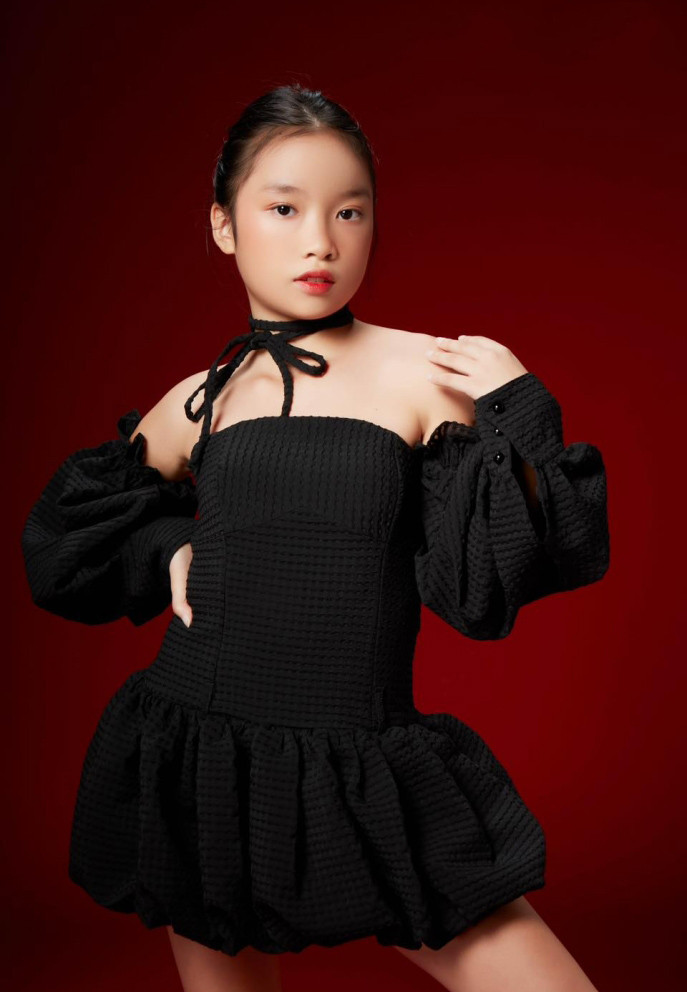 Trong các khung hình, Cherry Khánh My diện những bộ váy được may đo riêng. Cô bé kết hợp cùng thần thái tự tin, kỹ năng tạo dáng học hỏi từ các thế hệ người mẫu đi trước.