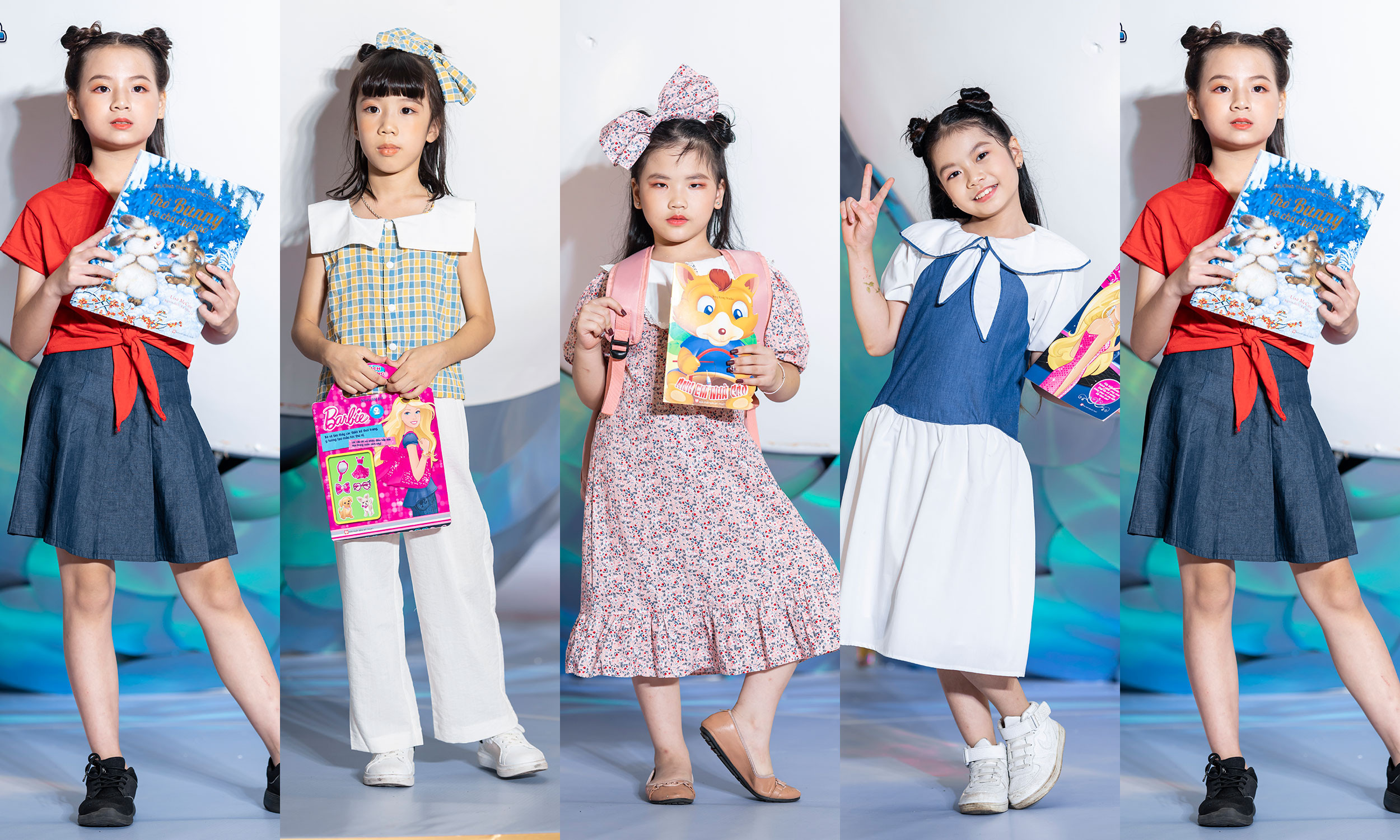 Không trình diễn thời trang kèm phụ kiện là túi xách đắt tiền, dãn mẫu nhí mang sách lên sân khấu để lan toả văn hoá đọc.