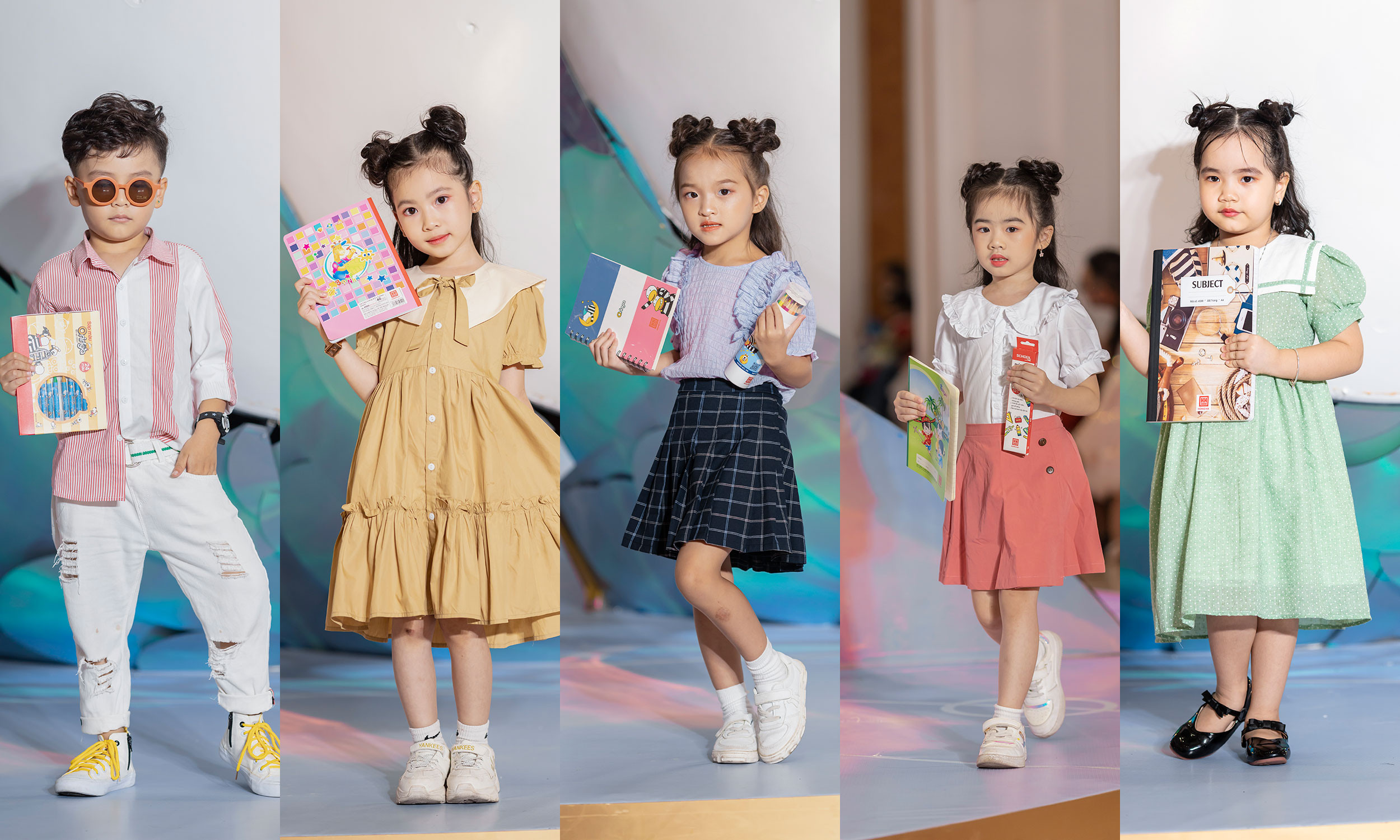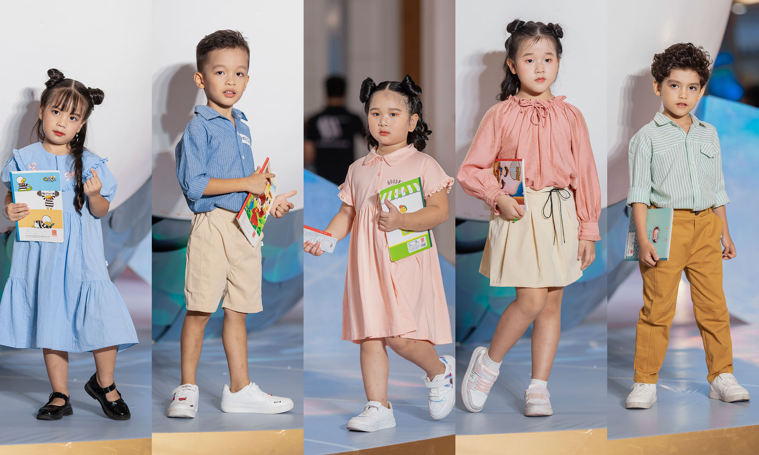 Để động viên tinh thần các bé chuẩn bị bước vào năm học mới, Tân Việt Books phối hợp với nhiều đơn vị tổ chức show diễn thời trang có 1-0-2 - Back to school.Show diễn thời trang quy tụ 200 mẫu nhí chuyên nghiệp. Khán giả và các bạn nhỏ tham dự đã được chiêm ngưỡng sân khấu đặc biệt, được thiết kế và đầu tư công phu dành riêng cho sự kiện lần này. Ý tưởng show diễn tái hiện khung cảnh đại dương với chú cá khổng lồ độc đáo và sống động, mẹ con mình chụp góc nào cũng đẹp.Và càng khiến mình ấn tượng hơn nữa khi dàn mẫu nhí bước ra tự tin với tạo hình công chúa thủy cung vô cùng đáng yêu. Thêm vào đó, mẫu nhí không dùng phụ kiện là những chiếc túi xách đắt tiền như các show diễn khác mà dùng chính những cuốn sách, vở,...BTC cho biết, ý tưởng này nhằm lan toả tinh thần văn hoá đọc, làm động lực để các em nhỏ bước vào năm học mới đầy hứng khởi.