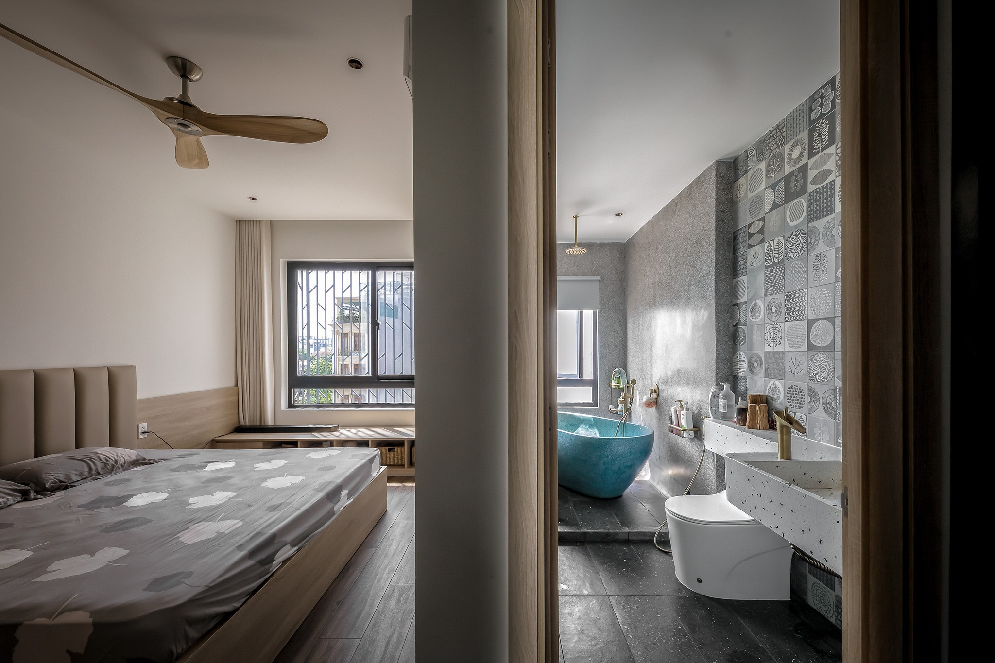 Đây là một ngôi nhà phố tổ hợp nhiều không gian, nội thất bài trí nhẹ nhàng, mộc mạc. Những khoảng không ngập nắng, thoáng mát là ưu điểm lớn nhất của nhà.