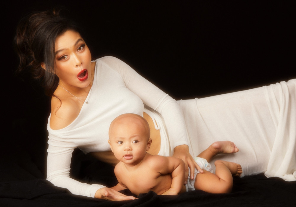 Mâu Thủy vừa thực hiện bộ ảnh đặc biệt cùng sự xuất hiện của con trai đầu lòng. Bé Mun - con trai của Mâu Thủy hiện 6 tháng tuổi, chập chững bò và đã ngồi được.