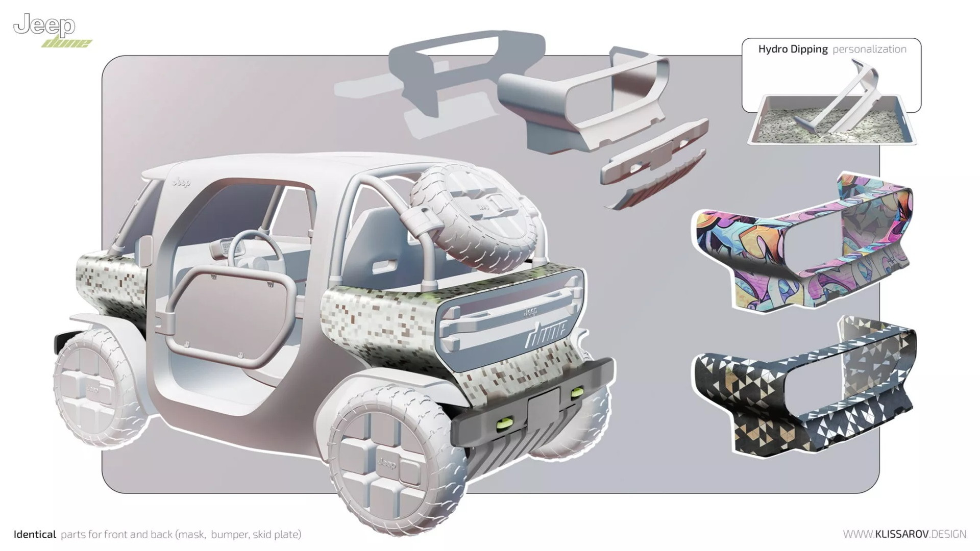 Một studio thiết kế của Pháp có tên Klissarov mới đây đã gây bất ngờ với một ý tưởng táo bạo, đó là sáng tạo ra một chiếc xe Jeep thuộc dòng quadricycle - một loại phương tiện giao thông chạy điện bốn bánh, nhỏ và nhẹ hơn so với ô tô thông thường. Tất nhiên, mẫu xe ý tưởng này mới chỉ được thể hiện trên một bản vẽ kỹ thuật số để giới thiệu ra công chúng.