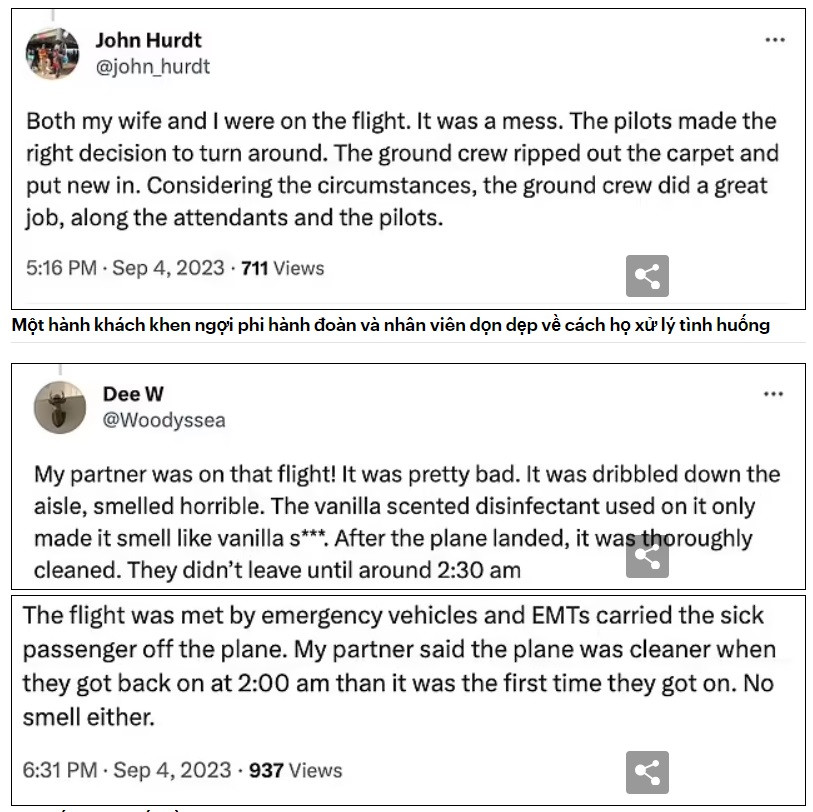Một hành khách khác dành lời khen tới phi hành đoàn cũng như các nhân viên mặt đất.
