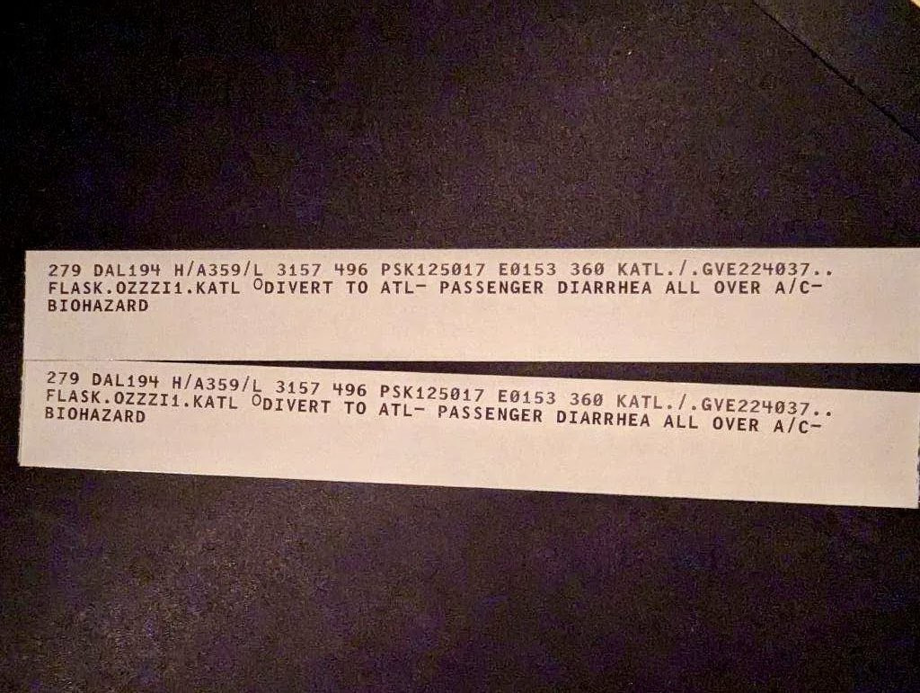 Trong một tin nhắn văn bản gửi đến đơn vị kiểm soát không lưu, cơ trưởng đã giải thích ngắn gọn vấn đề: “Chuyển hướng sang ATL – hành khách bị tiêu chảy khắp máy bay - nguy hiểm sinh học”.