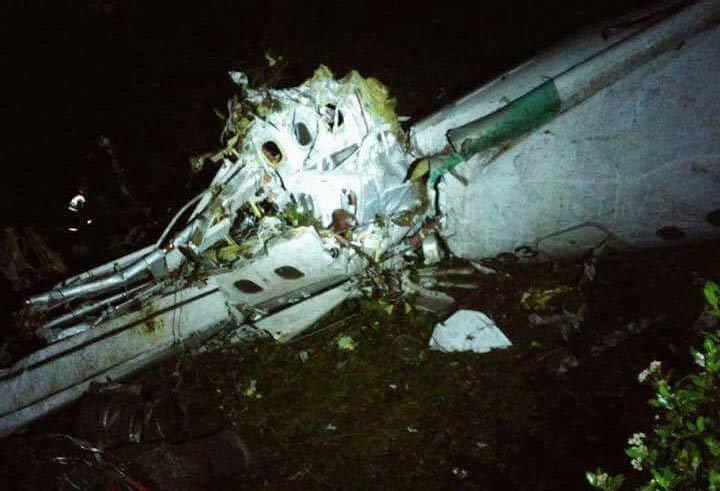 Chiếc máy bay chở 72 người, trong đó có các thành viên đội bóng Chapecoense của Brazil, đã bị vỡ làm đôi khi rơi xuống thị trấn La Union, Columbia, trang Mundodeportivo đưa tin.