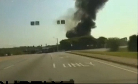 Kinh hoàng máy bay rơi cắm đầu xuống đường cao tốc