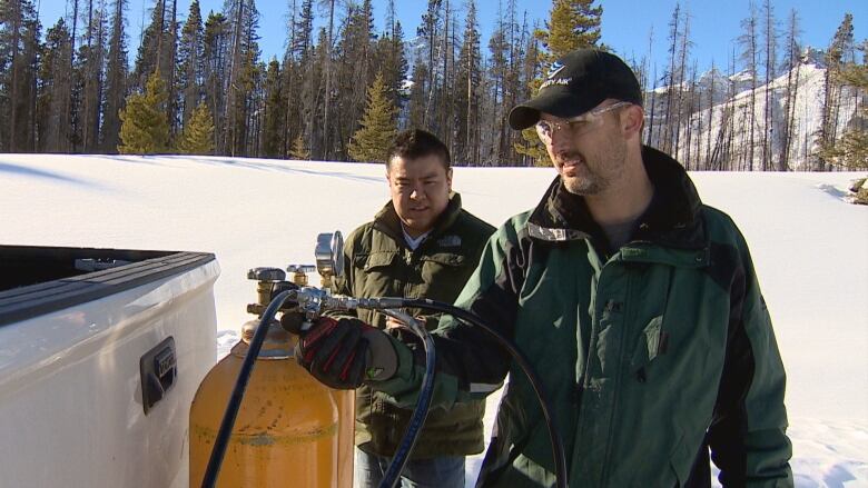 Moses Lam và Troy Paquette "thu hoạch" không khí sạch từ Vườn quốc gia Banff.