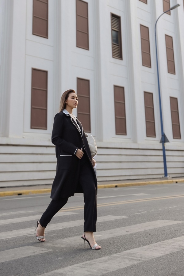 Ngoài blazer, nữ ca sĩ cũng lựa chọn đầm phom cứng, áo croptop, áo sơ mi cách điệu, chân váy bút chì,... khéo léo khoe thân hình thon gọn và vóc dáng gợi cảm. Maya ưu tiên lựa chọn những tông màu trầm, họa tiết đơn giản, kẻ caro, vừa nhẹ nhàng lại trẻ trung, năng động. Cách mix, match các phụ kiện, túi xách và giày cùng màu giúp bộ trang phục bớt đơn điệu.