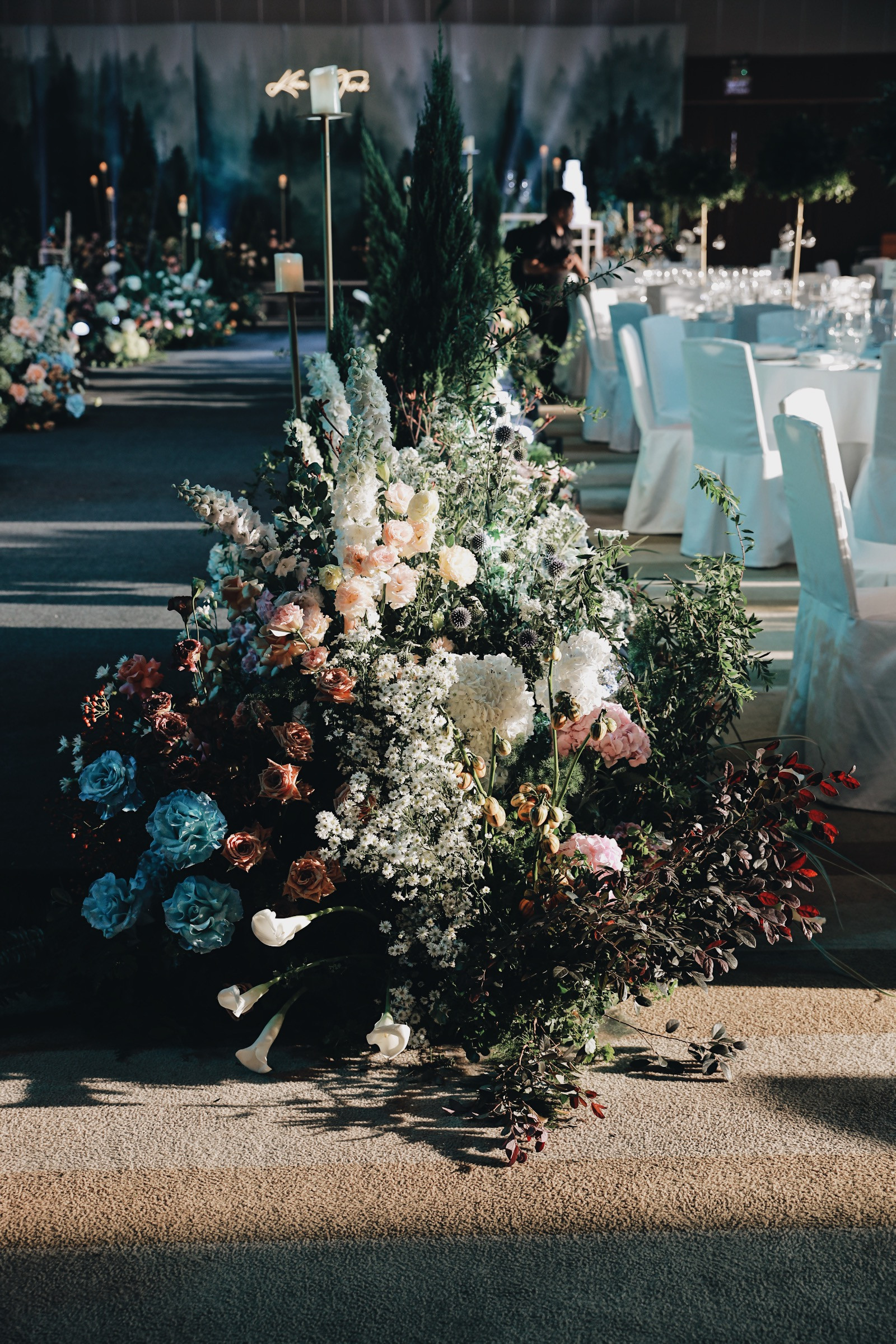 Nếu lễ gia tiên lấy cảm hứng từ đám cưới miền Tây thập niên 1970 - 1980 truyền thống và bình dị thì đám cưới vợ chồng MC là một không gian xanh mướt của những cánh rừng Bắc Âu. Trước đó, Liêu Hà Trinh từng đọc và rất yêu thích quyển sách nổi tiếng “Rừng Na Uy” của tác giả Murakami Haruki, luôn mơ về những giấc mơ lạc giữa rừng.