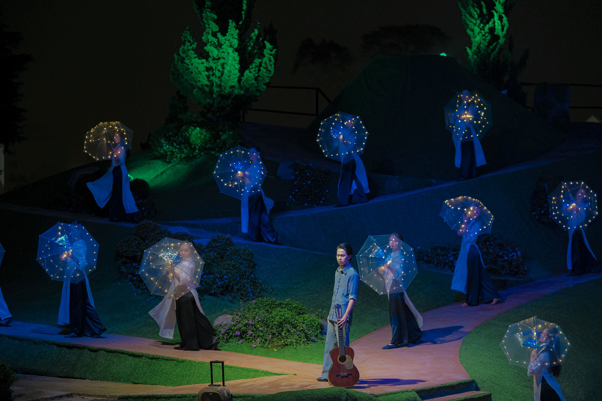 Chương trình dài vỏn vẹn 60 phút. Dù điều kiện thời tiết không thuận lợi với mưa rả rích, Trác Thúy Miêu cùng dàn nghệ sĩ vẫn tập trung biểu diễn, níu giữ người xem đến phút cuối cùng.