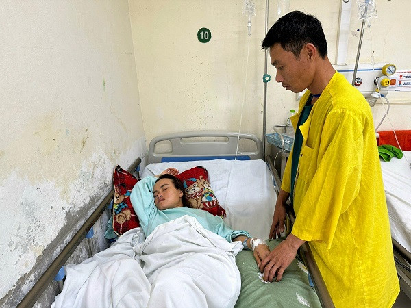 Không còn cách nào, anh Nguyễn Sỹ Lập (SN 1989), chồng chị Thương phải nghỉ làm để lên bệnh viện chăm sóc vợ. Các con nhỏ gửi nhờ nhà nội trông nom. Lúc đưa vợ nhập viện, anh chạy vạy khắp nơi mới vay được 50 triệu đồng. Số tiền nhanh chóng cạn kiệt chỉ sau ít ngày khiến anh càng thêm lo lắng.