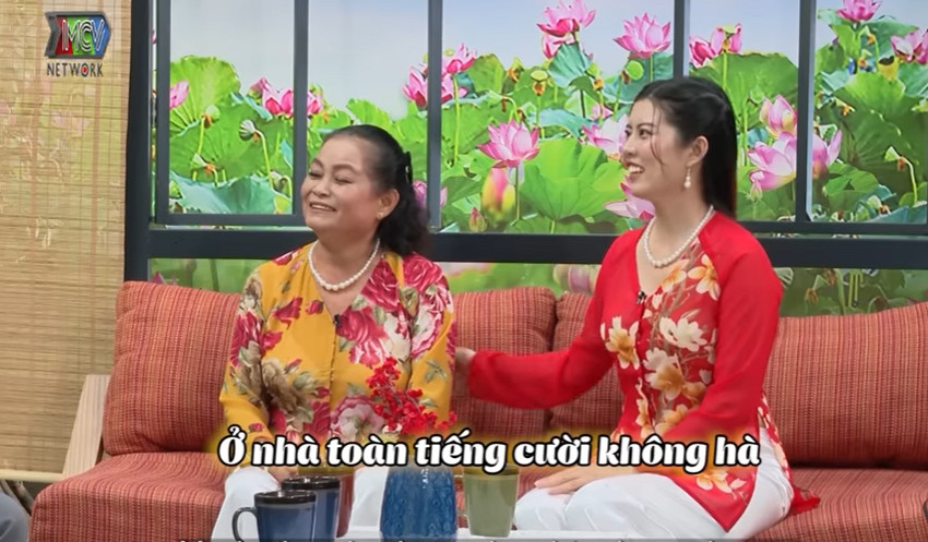 Mẹ chồng Nguyễn Thị Hằng (59 tuổi, Kiêng Giang) và con dâu Nguyễn Thùy Mỵ (27 tuổi) xuất hiện trong bộ áo bà ba đằm thắm, cuốn hút khán giả với cách nói chuyện vui vẻ, hồn nhiên.