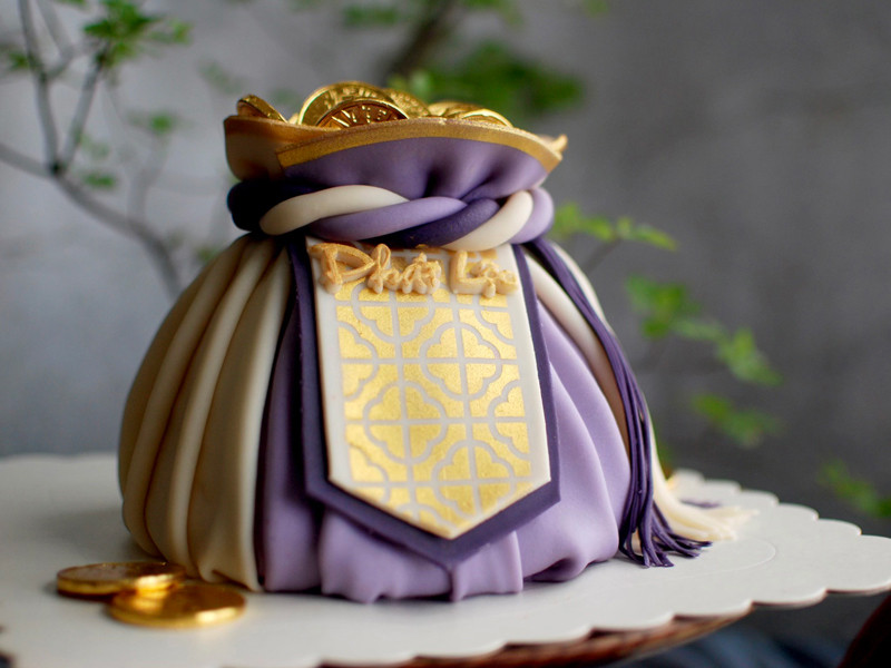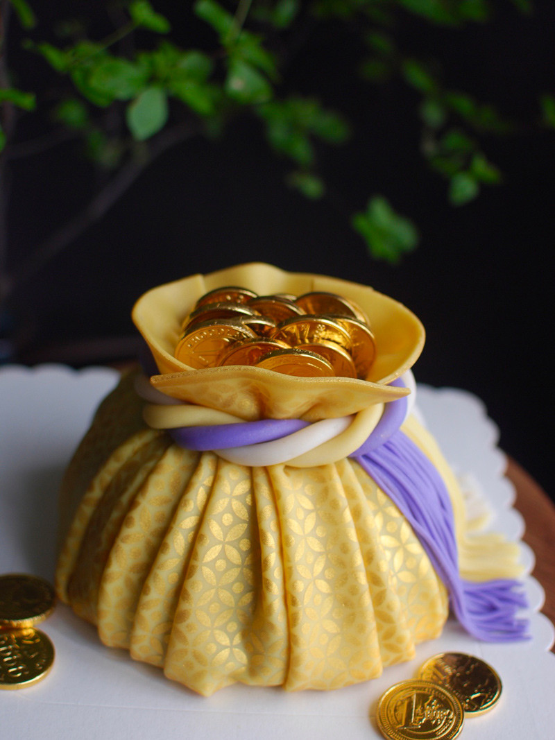 Thoáng nhìn qua "túi tài lộc" của chị Minh Phương được "thiết kế" với màu sắc cùng đường nét hoa văn tinh tế, bay bổng. Trên thực tế, nguyên liệu của "chiếc túi" được làm từ 2 thực phẩm cơ bản, gồm hạt đậu trắng và bột gạo. Tác phẩm đòi hỏi thời gian, công sức và sự tỉ mỉ đến từng chi tiết.