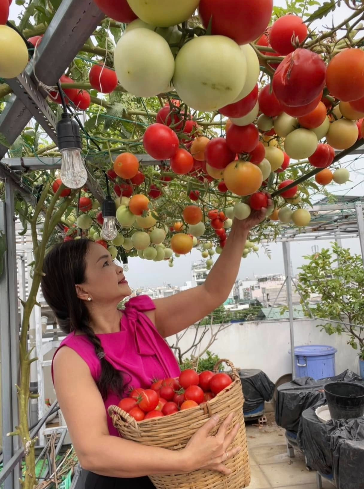 "Chậu và giàn đều do tôi thiết kế để có kích thước, vị trí đón nắng hợp lý, còn chồng tôi hỗ trợ thi công. Do đó, nhà tôi chỉ tốn tiền mua nguyên vật liệu thôi", chị Nhung cho biết.