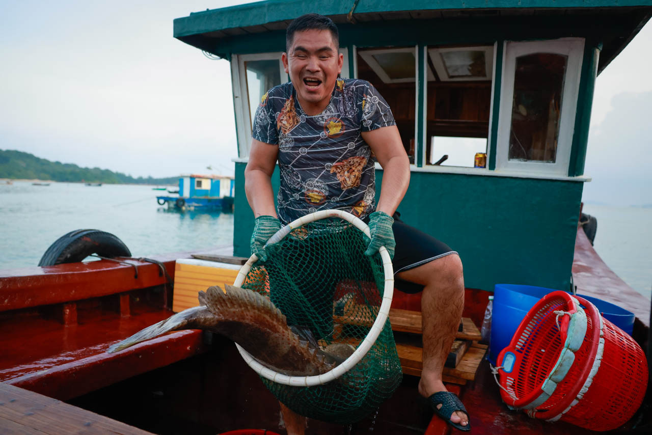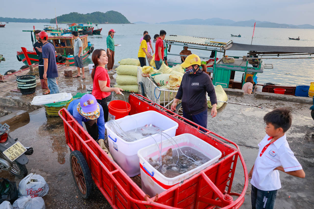 Những người phụ nữ trở về sau một đêm bắt ốc. Đã qua mùa cao điểm du lịch nên giá hải sản tại đảo rất phải chăng. Du khách có thể dễ dàng tìm mua để chế biến tại đảo hoặc mang về đất liền làm quà.