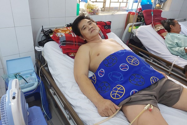 Đợt này, anh Từ được chuyển về Bệnh viện Đa Khoa Thống Nhất (Đồng Nai) để rút dịch do bị nhiễm trùng vết thương vùng bẹn đùi phải. Dự kiến, bác sĩ sẽ tiến hành 5 lần rút dịch. Mỗi lần, gia đình phải lo chi phí ngoài danh mục bảo hiểm y tế là 5 triệu đồng.