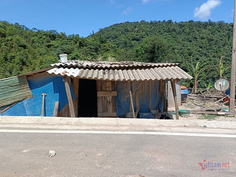 Trong túp lều tạm bợ nằm cạnh quốc lộ 8A, gần khu vực cửa khẩu quốc tế Cầu Treo, người phụ nữ gần 70 tuổi, nét mặt hằn lên sự khắc khổ, đang chăm sóc một người đàn ông tật nguyền nằm liệt giường, miệng luôn ú ớ những từ vô nghĩa như đứa trẻ.
