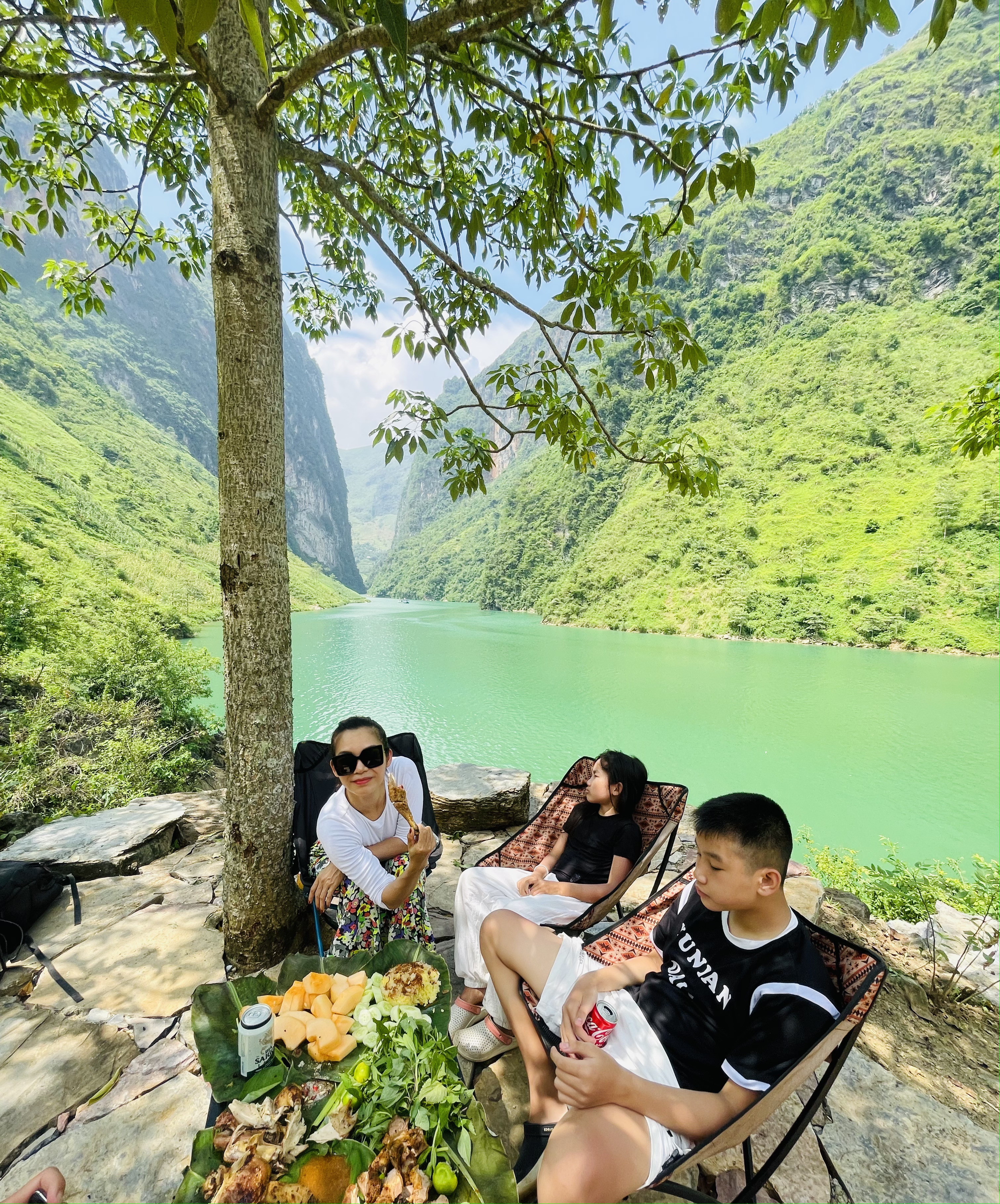 Buổi trưa, cả nhà ăn dê nướng, gà nướng trên mỏm đá "có view triệu đô".