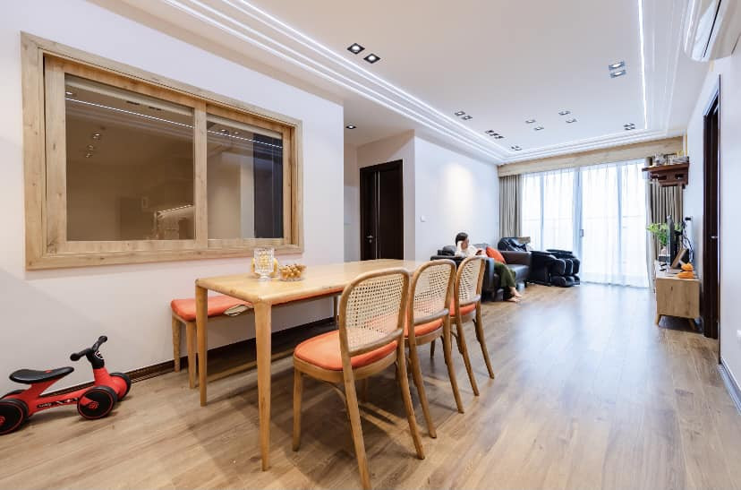 Căn hộ của chị Nguyễn Thu Hằng được mua đúng đợt giãn cách năm 2021, dù nằm ngoài kế hoạch nhưng chị giao dịch rất nhanh và may mắn mua được căn ưng ý. Chị dự trù không đầu tư nhiều cho hoàn thiện nhà, chỉ cần thoáng, sáng, nhiều khoảng không gian cho trẻ con chơi...