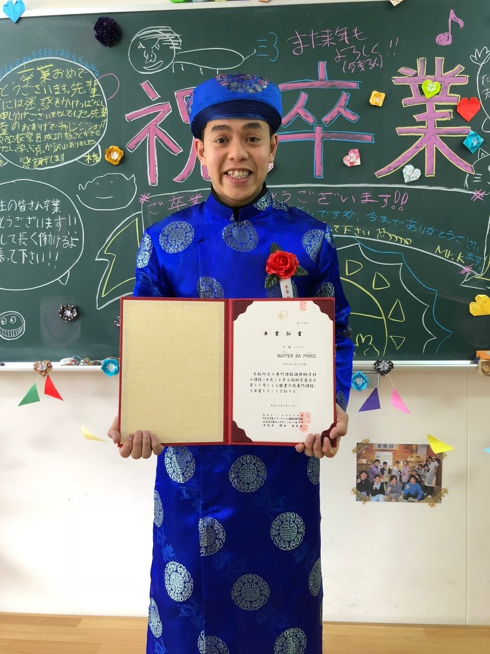 Thường những người nước ngoài khi sang đây sẽ phải mất 2 năm để học về ngôn ngữ, văn hóa rồi mới được học nghề nấu ăn. Nhưng Phước chỉ cần 1 năm đã trở thành sinh viên xuất sắc nhất khoa tiếng Nhật, đủ điều kiện được đi học nghề.