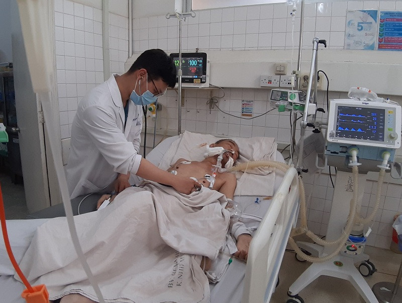 Trong phòng bệnh nặng Khoa Nhiễm Việt Anh (Bệnh viện Bệnh nhiệt đới TP.HCM), anh Trần Thanh Quan (SN 1990, quê Đồng Nai) vẫn còn rất yếu, phải thở máy, cơ thể gắn chằng chịt máy móc y tế. Gương mặt anh già nua như một người trung niên.