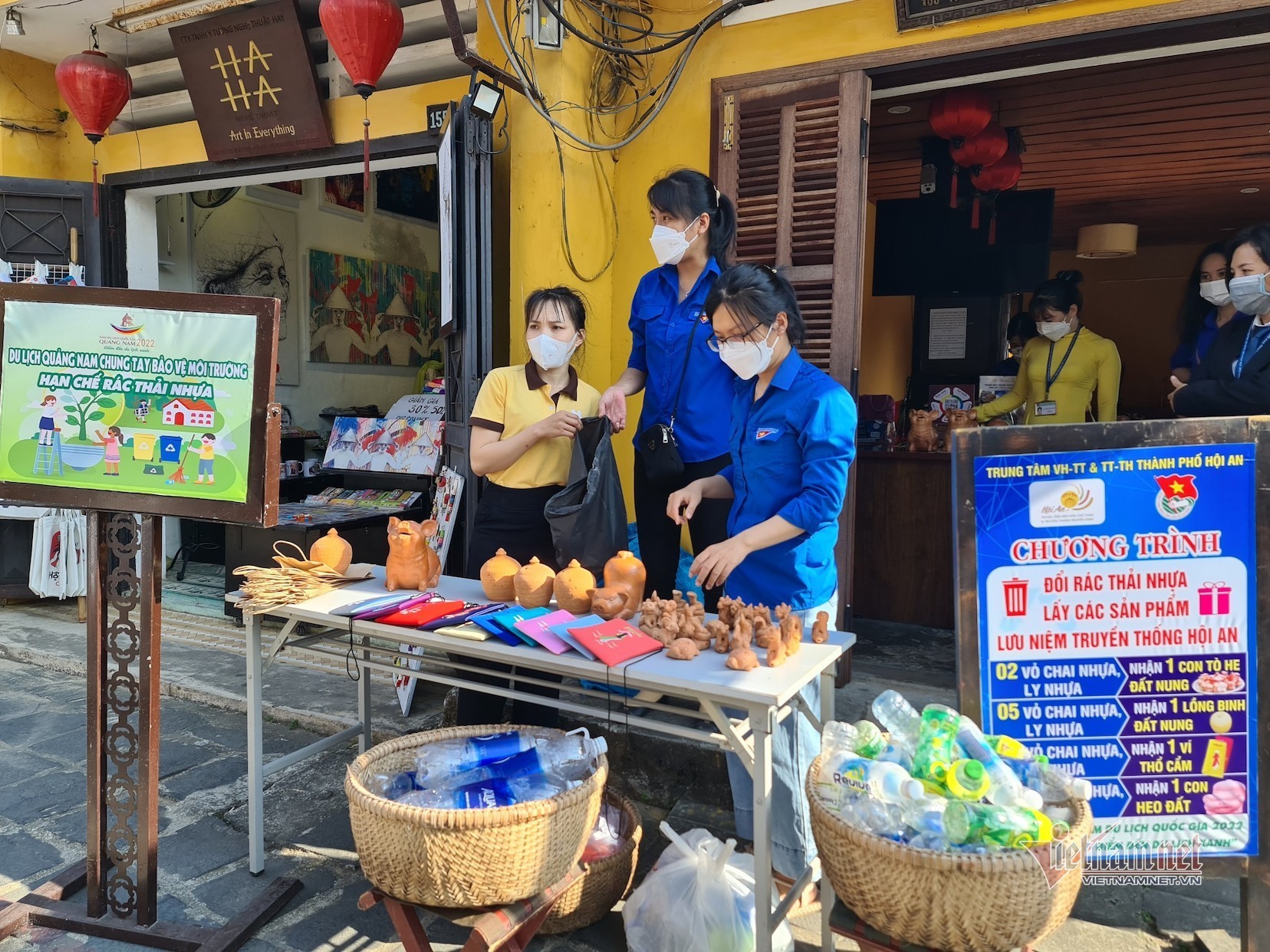 Cũng trong chiều 24/3, Đoàn Thanh niên Trung tâm VHTT-TT-TT TP Hội An (tỉnh Quảng Nam) đã tổ chức chương trình đổi rác thải nhựa lấy các sản phẩm lưu niệm truyền thống Hội An.