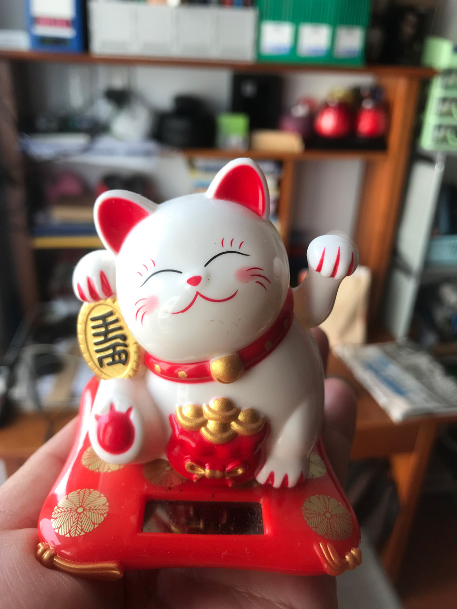 Tôi từng thấy hình tượng của chú mèo hoan hoan hỷ này - đó là những chú mèo vẫy tay, mập ú và mặt tươi tắn dễ thương - ở khá nhiều nơi, đặc biệt trong các quán ăn uống, cửa hàng kinh doanh. Mọi người thường đặt mèo ở vị trí đối diện cửa ra vào, nhìn thẳng ra cửa chính và trên kệ, quầy bar.