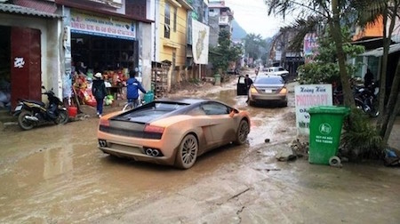 Lamborghini Gallardo "bươn chải" trong sình lầy. |