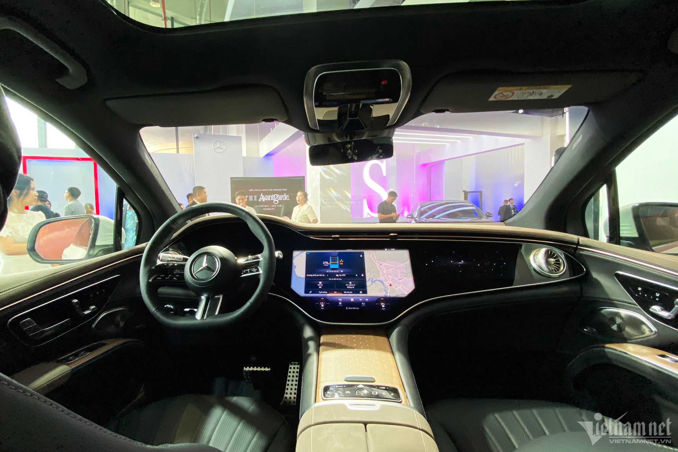 Điểm nhấn nổi bật nhất trong khoang nội thất chính là màn hình cong Hyperscreen 56 inch trải dài từ ghế lái sang ghế phụ với 3 màn hình chính bao gồm: Bảng đồng hồ kỹ thuật số 12,3-inch sau vô lăng, màn hình giải trí trung tâm OLED 17,7 inch và màn hình hiển thị thông tin phía trước ghế phụ OLED 12,3 inch.