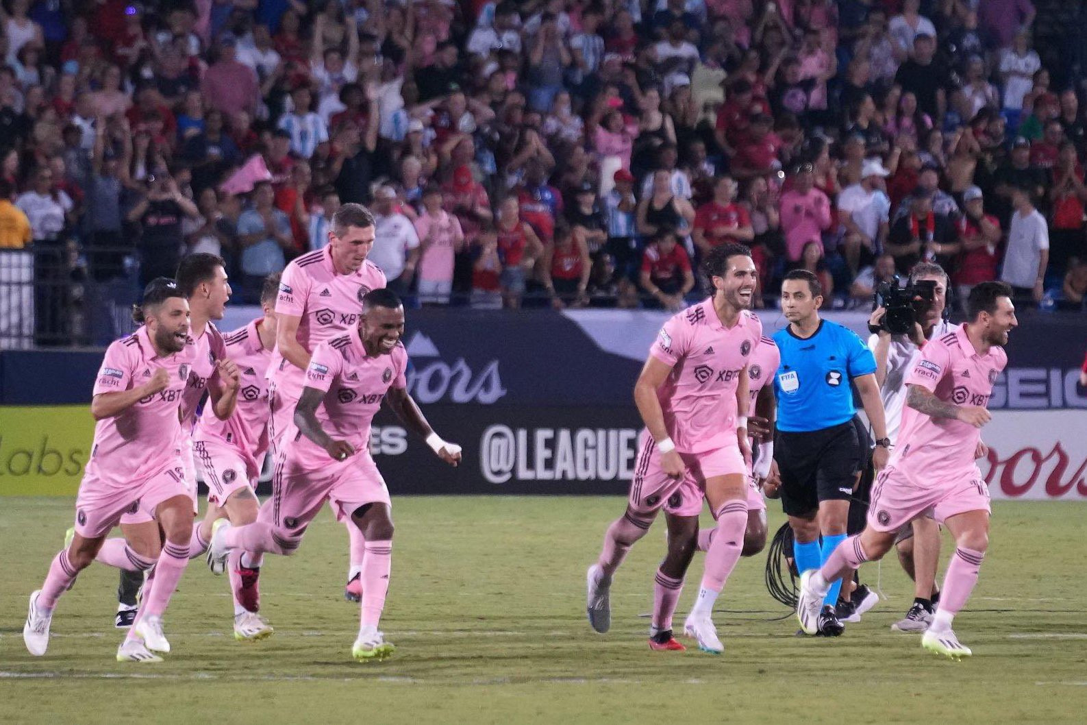 Hòa 4-4 sau 90 phút chính thức, hai đội phải phân định thắng thua trên chấm penalty. Messi mở màn thành công truyền cảm hứng để các đồng đội đá thành công cả 4 quả 11m tiếp theo. Chung cuộc, Inter Miami thắng 5-3 luân lưu.Niềm vui của cầu thủ Inter Miami sau khi kết thúc loạt penalty cân nãoInter Miami thắng nghẹt thở trên chấm luân lưu để giành vé vào tứ kết Leagues Cup