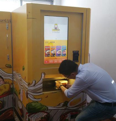 Một máy bán tô mì bò tự động đã gây nhiều tò mò tại cuộc triển lãm ở Thượng Hải (Trung Quốc). Khách hàng chỉ cần ấn nút trên màn hình cảm ứng và chờ đợi trong chốc lát, họ sẽ được phục vụ một tô mì bò nóng hổi.