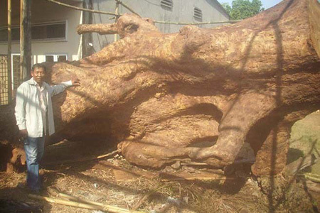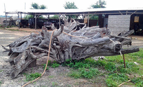 Gốc cổ thụ có chiều dài 4,5m, ngang 3,5 m, chiều cao hơn 1m, nặng hơn 4 tấn có xuất xứ từ nước Lào, ước trị giá hơn 2 tỷ đồng...