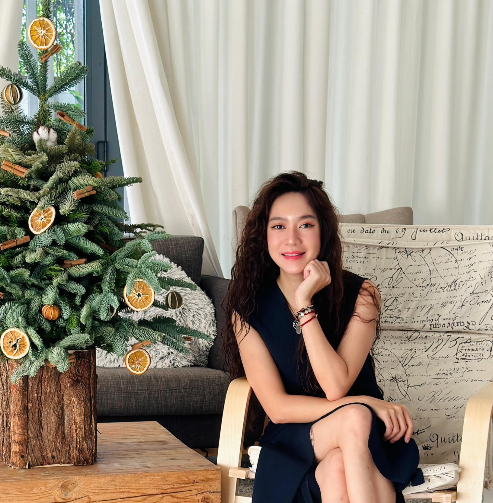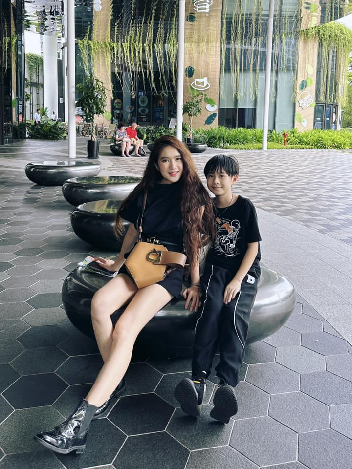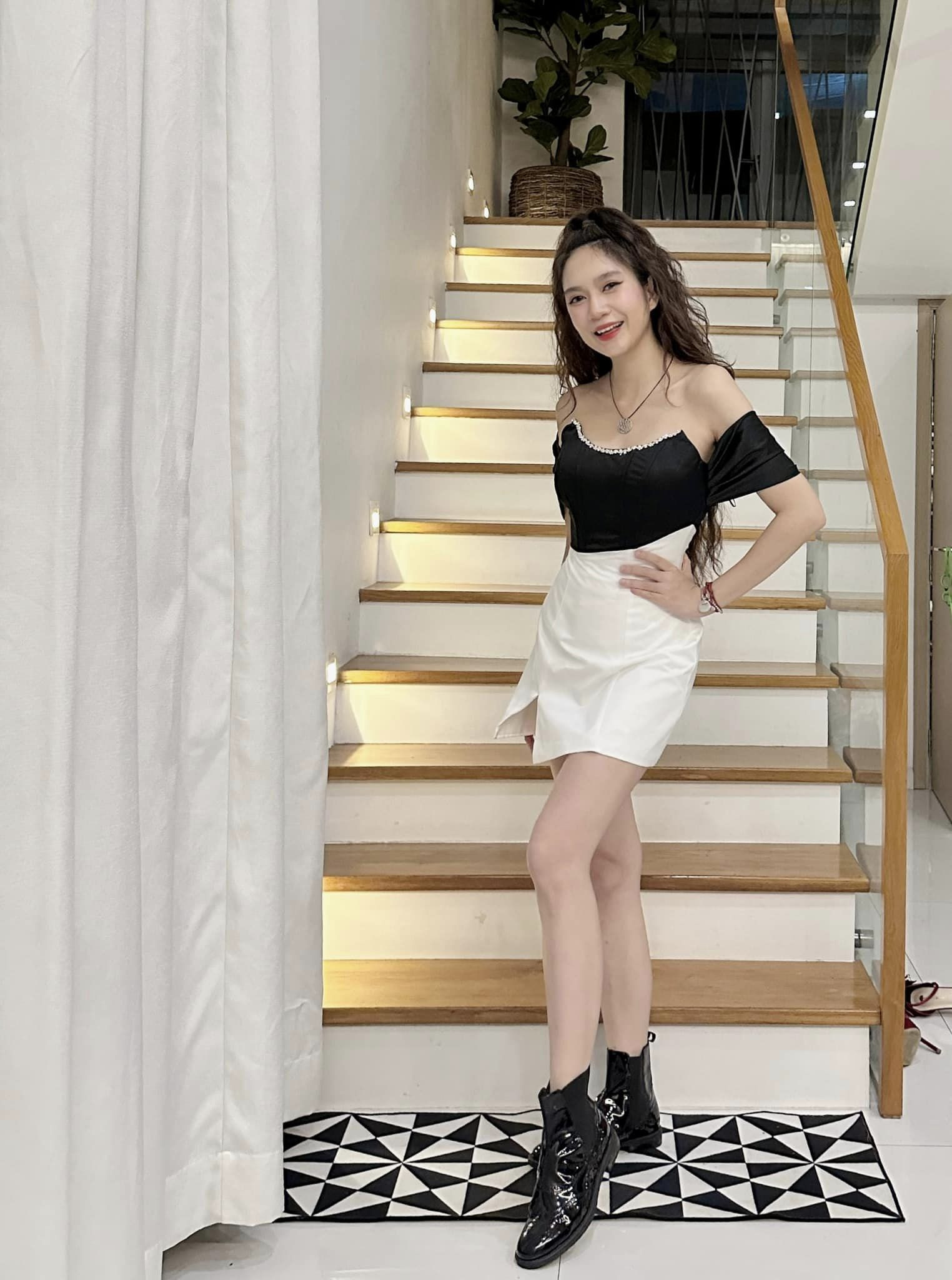 Minh Hà không ngại khoe vai gầy, eo thon mỗi dịp xuất hiện bên chồng con.