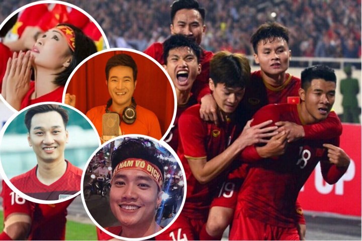 Diễn viên Quốc Trường, MC Thành Trung, ca sĩ Minh Quân đều bày tỏ cảm xúc sung sướng đến vỡ oà khi Việt Nam thắng Thái Lan vào phút cuối của trận đấu.