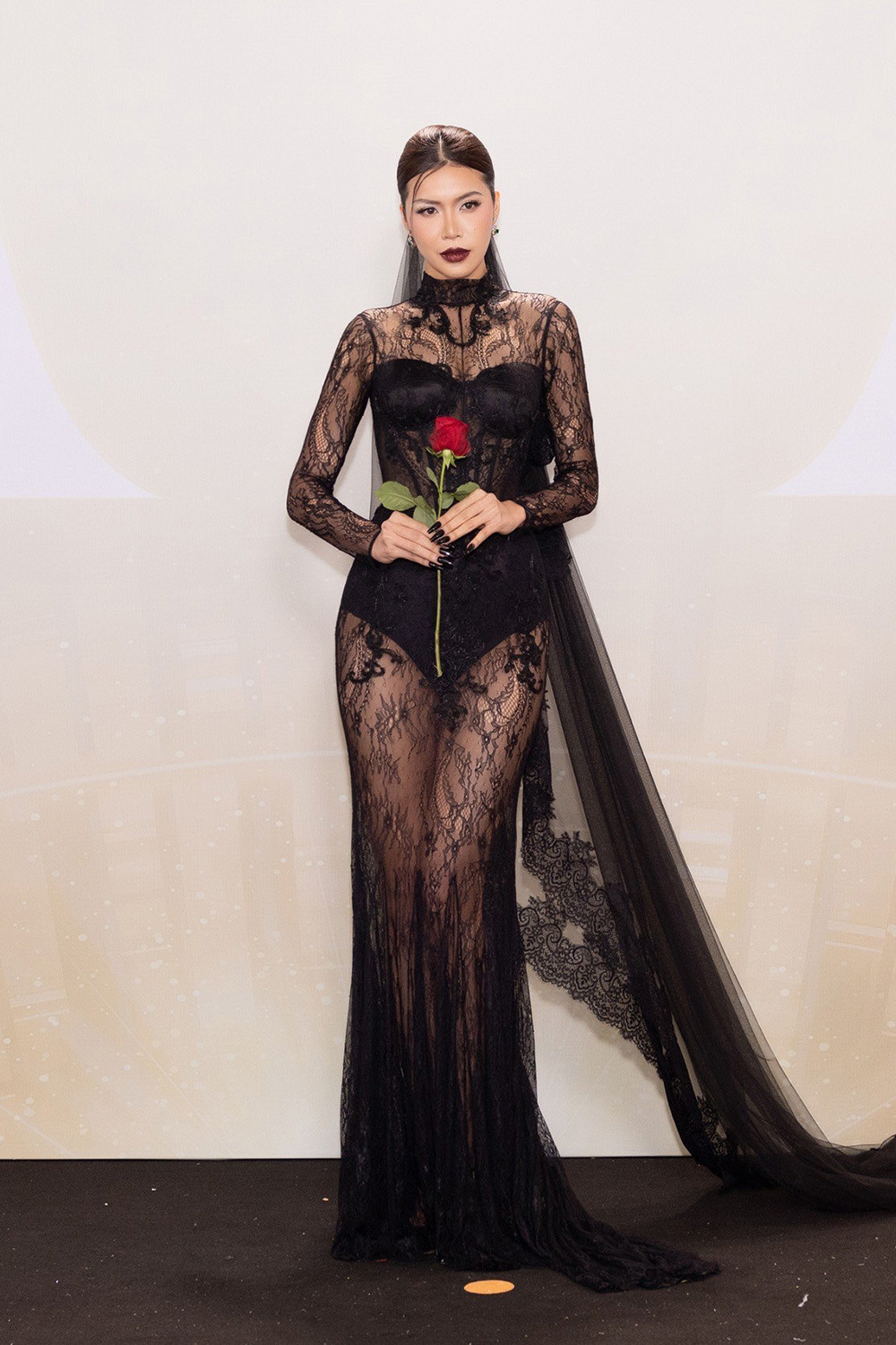 Siêu mẫu Minh Tú xuất hiện với phong cách 'cô dâu đen’ trong đầm dạ hội đuôi cá tông đen dáng corset, mang chất liệu xuyên thấu, phối với chiếc khăn đội đầu dài cùng màu, son môi màu trầm. Hoa hậu Khánh Vân khiến người hâm mộ thích thú khi xuất hiện tại thảm đỏ với trang phục 'hở bạo', khoe trọn hình thể gợi cảm. MC Thanh Thanh Huyền xuất hiện với vương miện Miss Charm Vietnam, diện đầm khoét ngực gợi cảm.