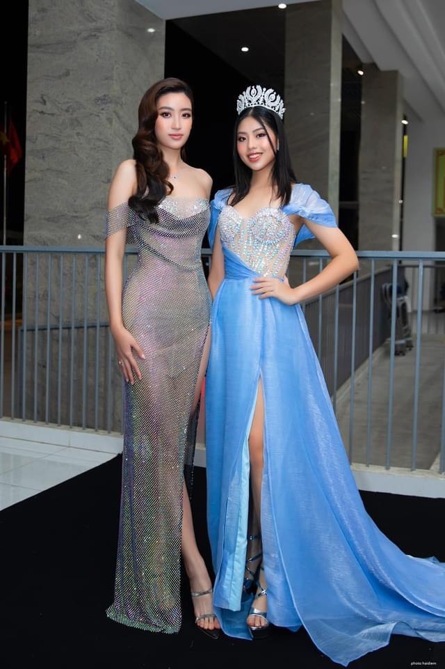 Tại đêm diễn thời trang này, Gia Hân gây ấn tượng trên thảm đỏ với chiếc đầm xanh nhạt, tạo điểm nhấn với các hạt đính kết tinh tế và gần gũi với độ tuổi của cô. Ngoài ra, Miss Teen International Việt Nam 2021 còn nổi bật hơn khi đội chiếc vương miện mà mình đoạt giải vào tháng trước.