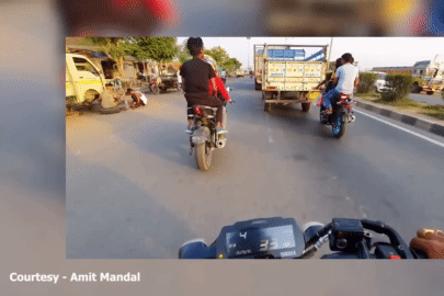 Ấn Độ - Nam thanh niên đột ngột lao thẳng chiếc môtô vào đuôi xe tải khiến những người ngồi sau đầu không mũ bảo hiểm ngã nhào xuống đường.