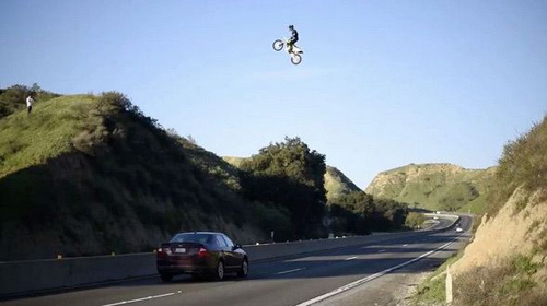 Một đoạn video ghi lại hình ảnh biker lái mô tô bay trên không qua cao tốc ở độ cao khoảng hơn 3m so với mặt đường khiến nhiều người xem thất kinh.