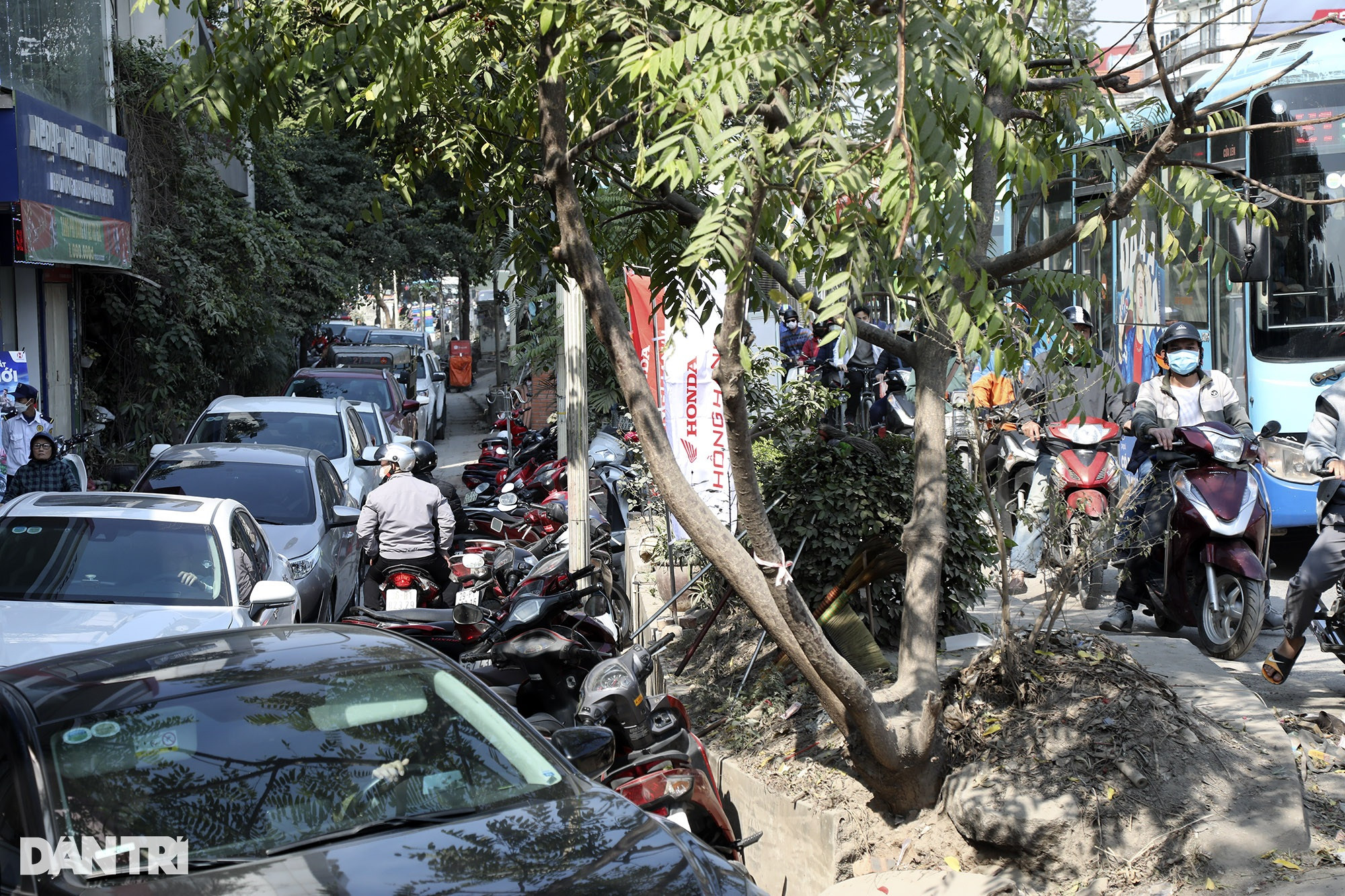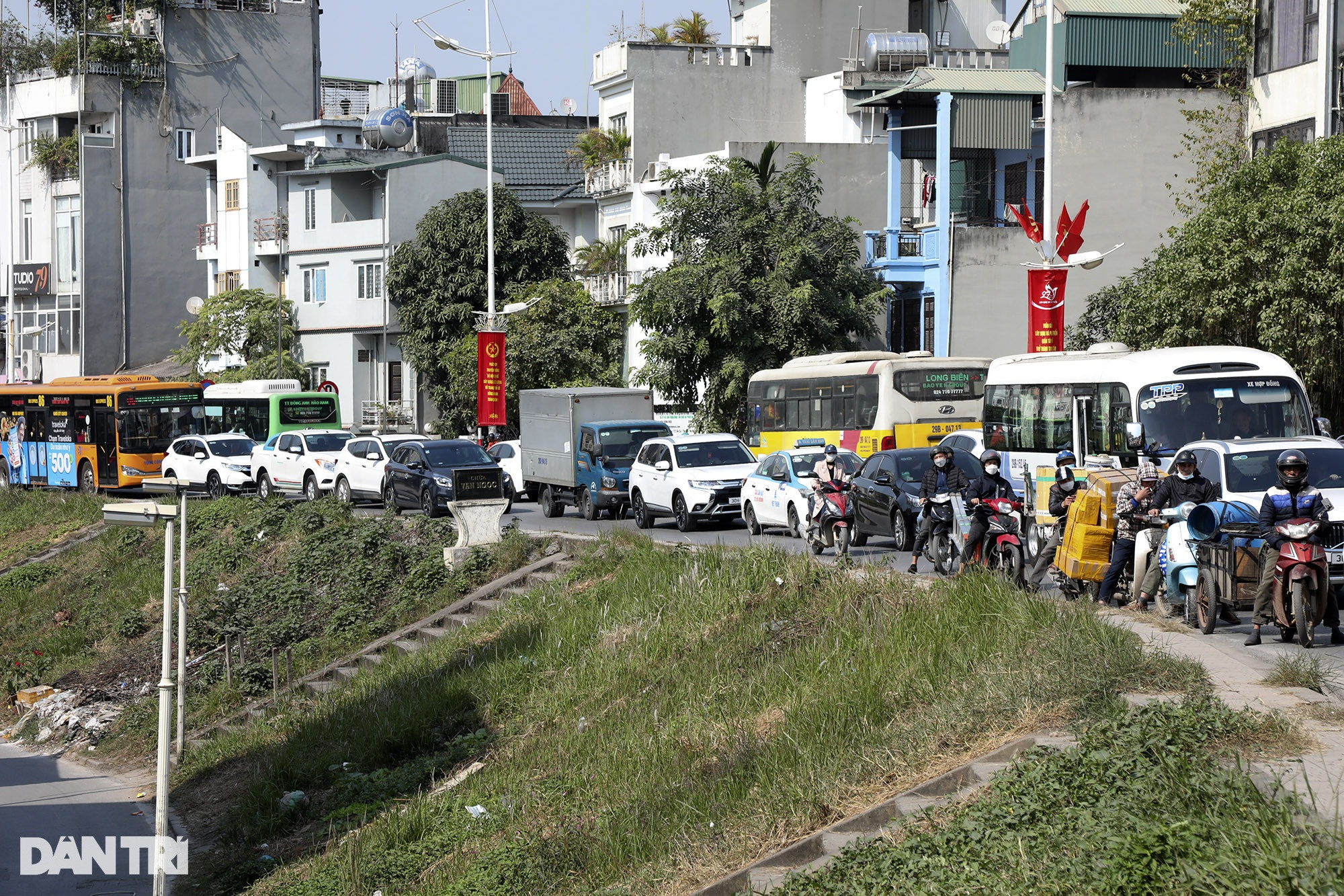 Nhiều người đã phải dắt tạm xe lên vỉa hè chờ đợi. Một lượng lớn người tham gia giao thông tại đây đang hướng về phủ Tây Hồ để đi lễ ngày mùng Một cuối cùng trong năm Nhâm Dần.