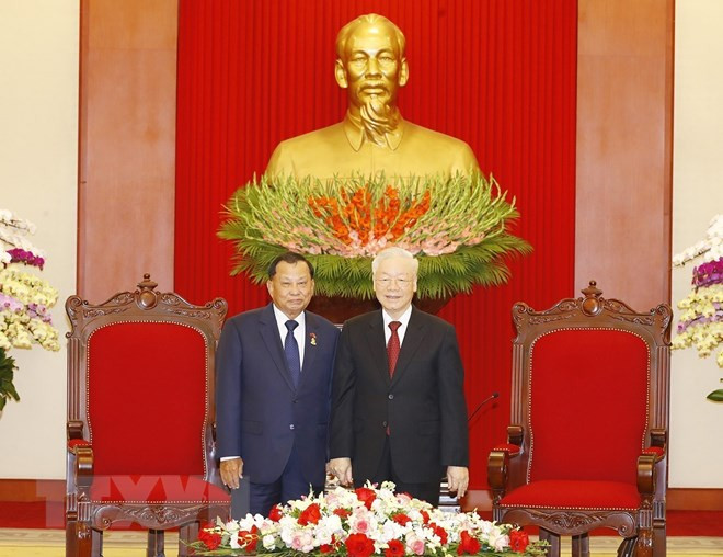 Tổng Bí thư khẳng định quan hệ giữa hai nước cũng như giữa ba nước Việt Nam - Lào - Campuchia góp phần quan trọng giúp mỗi nước phát triển phồn vinh, nhân dân có cuộc sống ấm no, hạnh phúc và vị thế quốc tế của mỗi nước được nâng cao, nhấn mạnh ba nước đoàn kết giúp đỡ lẫn nhau cả về vật chất, tinh thần và chia sẻ kinh nghiệm để cùng nhau phát triển.