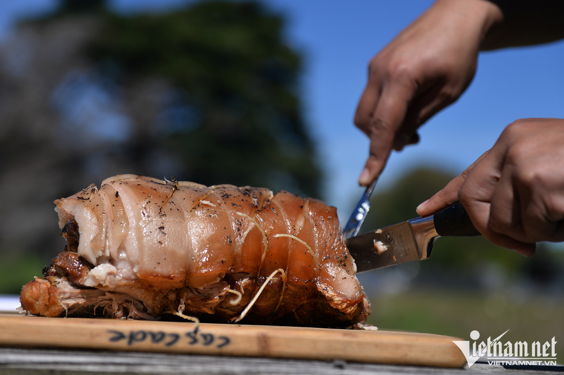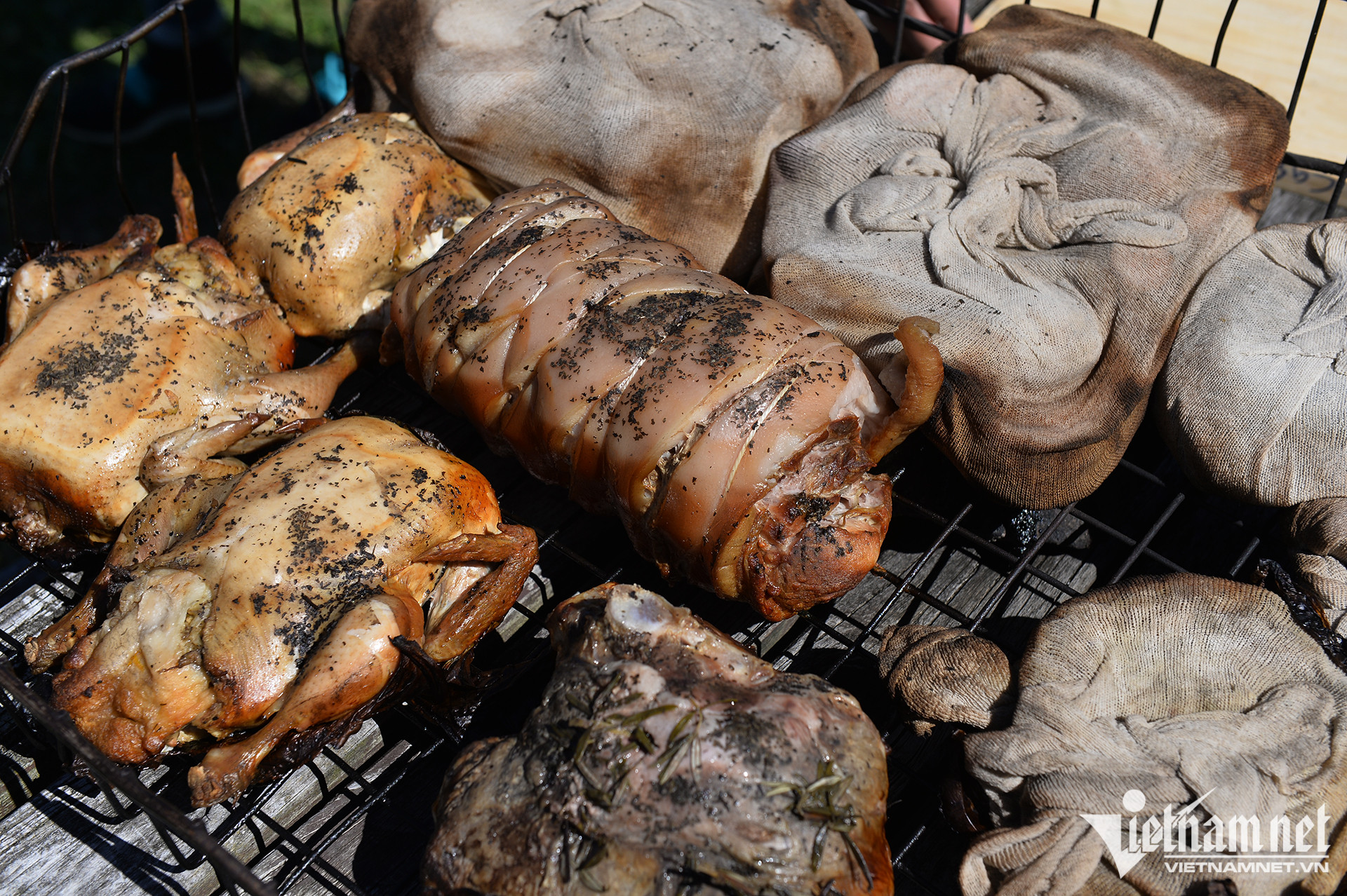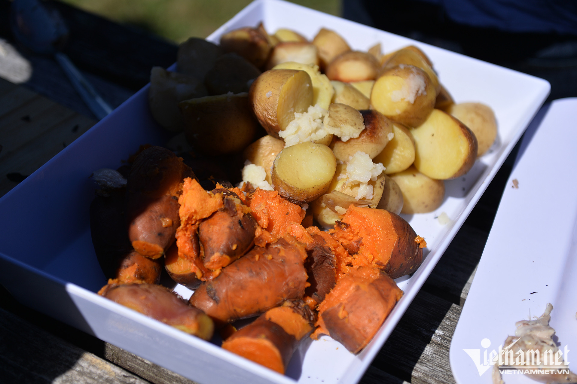 Phần rau củ giống đồ hấp hơn đồ nướng vì chúng vẫn giữ được độ ẩm và không bị mất nước. Tất cả được trút ra khỏi bao, tỏa mùi thơm nức. Một cảm giác thèm được nếm xuất hiện ngay trong mỗi một người đứng gần chứng kiến.