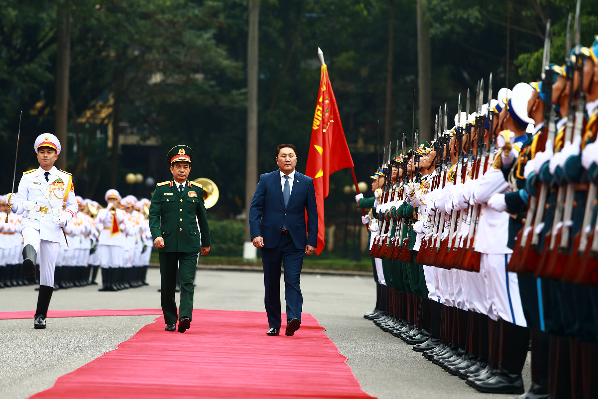 Ngày 6/12, Đại tướng Phan Văn Giang, Bộ trưởng Bộ Quốc phòng chủ trì lễ đón Bộ trưởng Bộ Quốc phòng Mông Cổ Saikhanbayar Gursed.