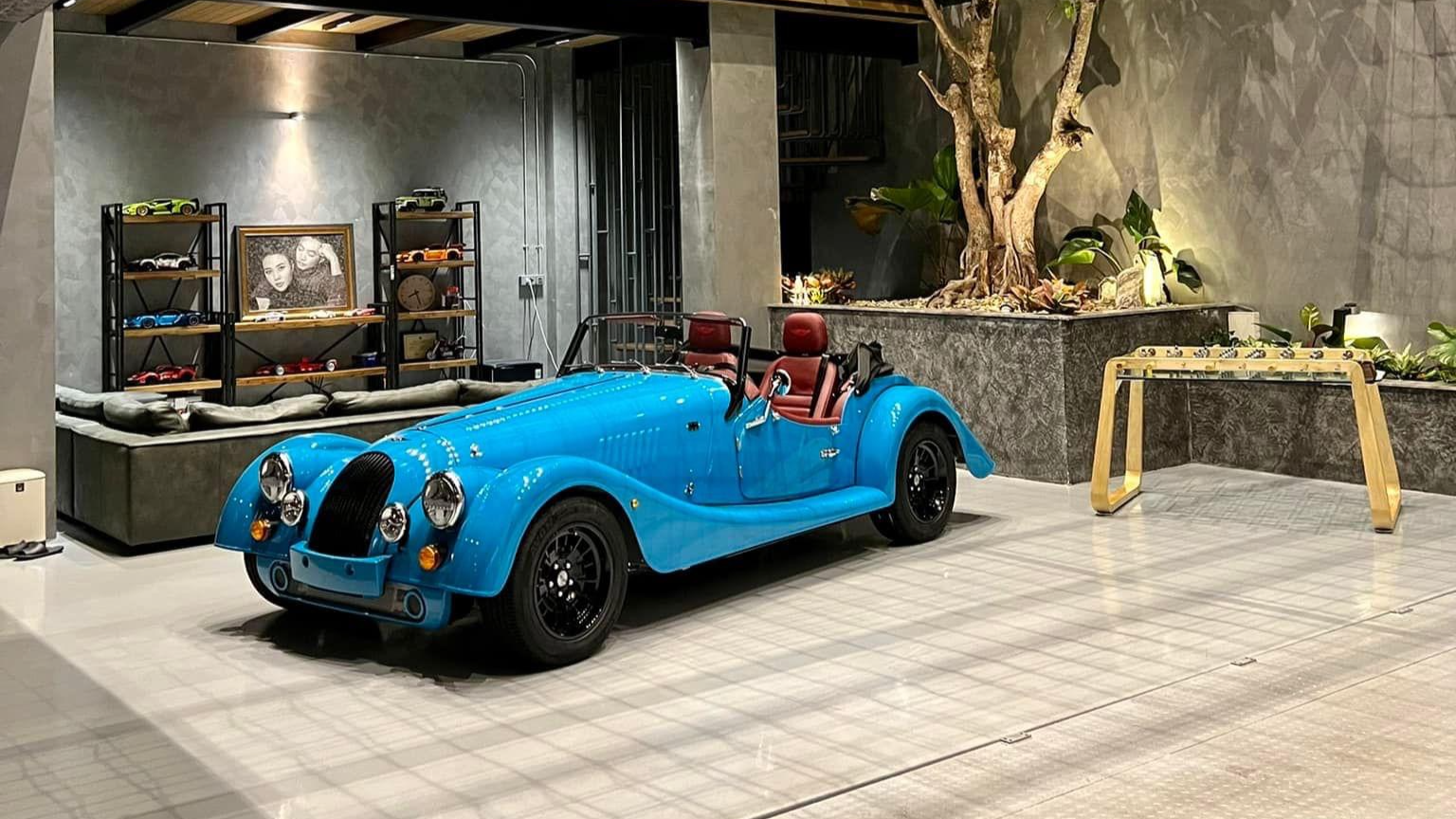 | Chiếc Morgan Plus Four màu xanh dương mới về "ăn Tết" trong dinh thự của đại gia Cường đô la. |