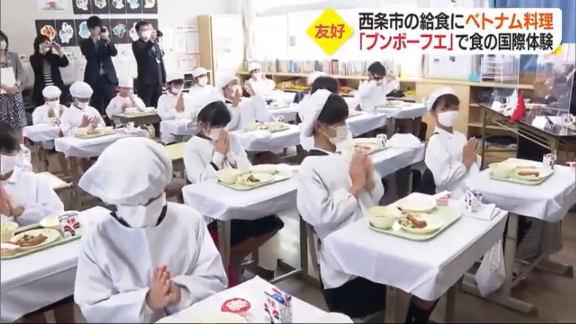 Theo đó, 35 trường tiểu học và trung học cơ sở đã tổ chức bữa ăn “Bún bò Huế -một đặc sản của thành phố Huế, Việt Nam” trong bữa trưa. Món ăn đặc sản của Việt Nam được tờ FNN của Nhật Bản mô tả là đặc sản của Thừa Thiên Huế - Việt Nam, sử dụng nguyên liệu chính là bột gạo và thịt bò. Các em học sinh đều rất hài lòng và thích thú với món ăn mới lạ này, hài lòng với thực đơn “khác thường” và vị cay chưa từng thấy.