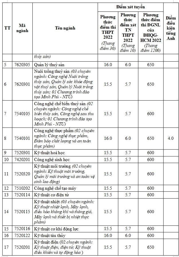 Nhà trường lưu ý điểm điều kiện tiếng Anh là điểm thi tốt nghiệp THPT năm 2022.