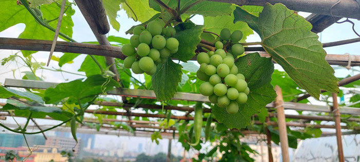 Khi bắt tay vào việc, sân thượng được anh chị làm chống thấm, hệ thống lan can và khung giàn cho cây leo một cách cẩn thận. Ban đầu, chị Ngọc chỉ trồng những loại cây như rau cải, mồng tơi, cà chua, rau muống… để phục vụ bữa ăn hàng ngày của gia đình.