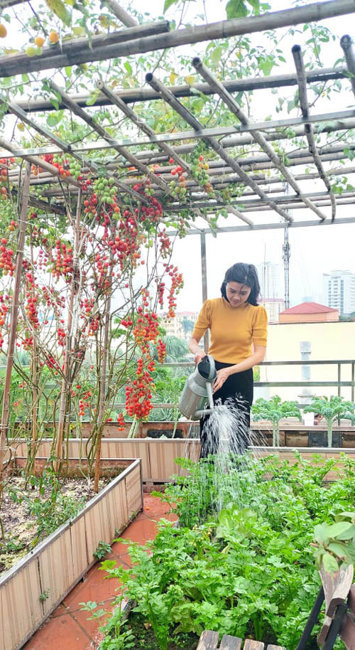 Đối với mình, rau quả không những là thực phẩm đơn thuần, mà nó còn là những phương thuốc tự nhiên chữa được rất nhiều bệnh cả về thể chất lẫn tinh thần. Nên mình nghĩ đầu tư cho vườn cũng là đầu tư cho sức khỏe”, 8X bộc bạch.