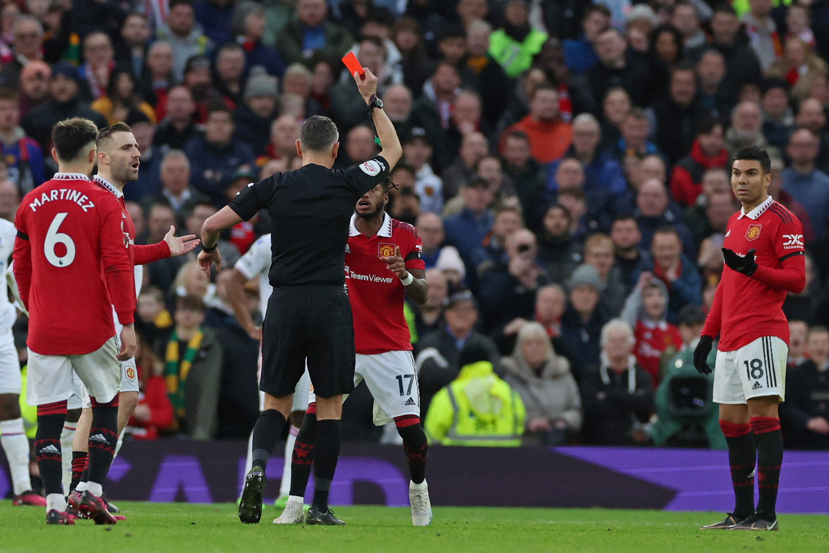 Kịch bản trên sân Old Trafford sẽ đẹp hơn với thầy trò Ten Hag, nếu Casemiro không bị truất quyền thi đấu ở phút 70.