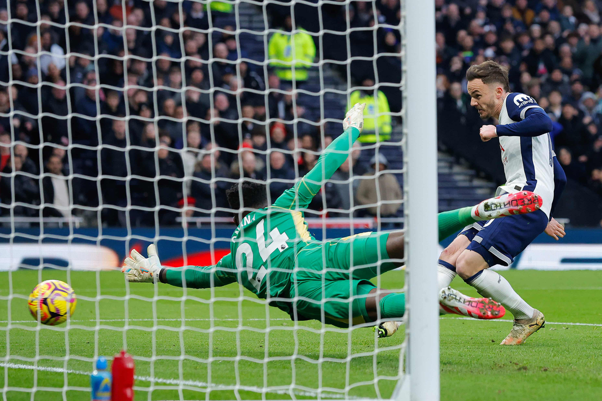 Ở Tottenham Hotspur Stadium, Maddison nhận được món quà vô giá từ Andre Onana. Thủ môn người Cameroon một lần nữa trở thành vấn đề nhức nhối nhất của MU.