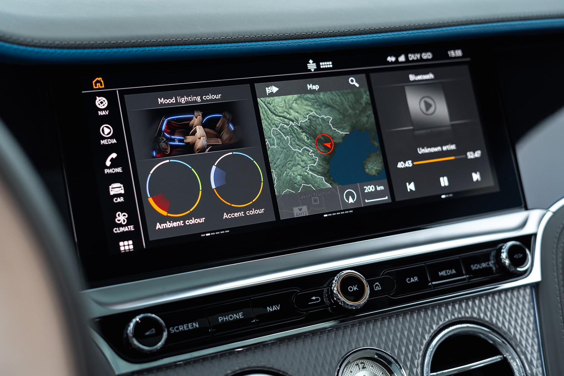 Về tiện nghi, Continental GT V8 được trang bị màn hình cảm ứng trung tâm 12,3 inch, ghế ngồi chỉnh điện 20 hướng tích hợp chức năng sưởi và làm mát, điều hòa tự động 4 vùng độc lập, cùng hệ thống âm thanh Bang & Olufsen 16 loa cao cấp.